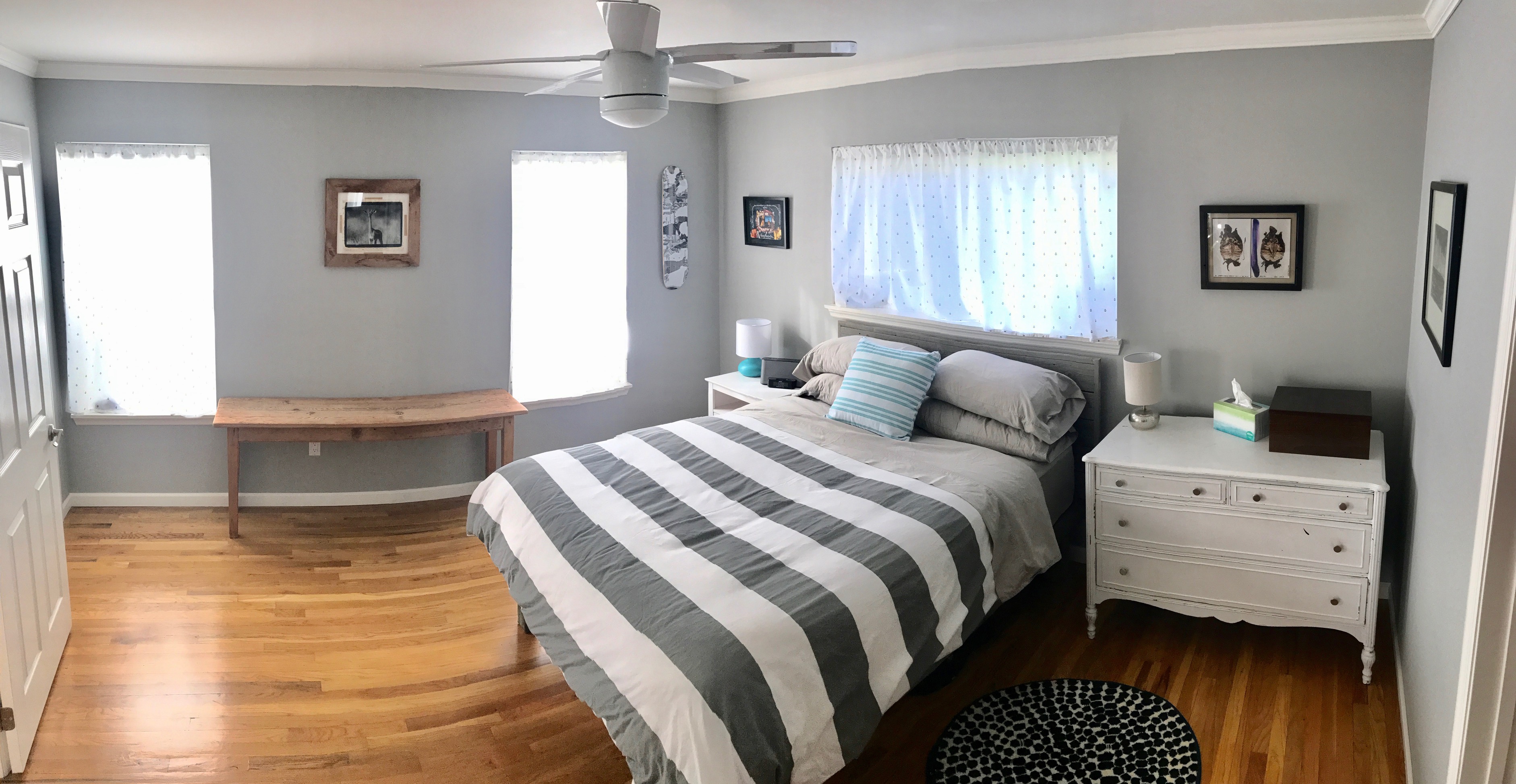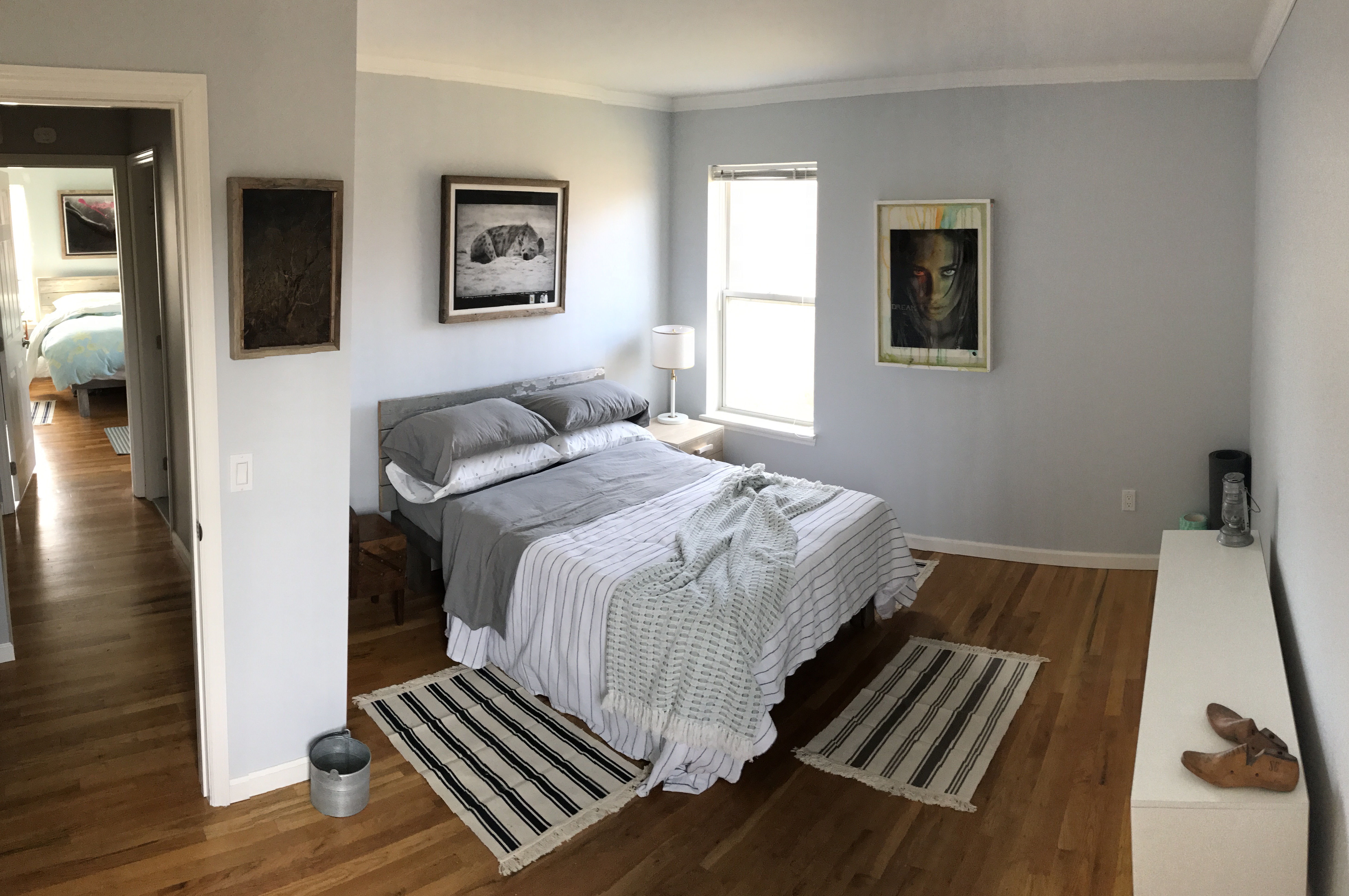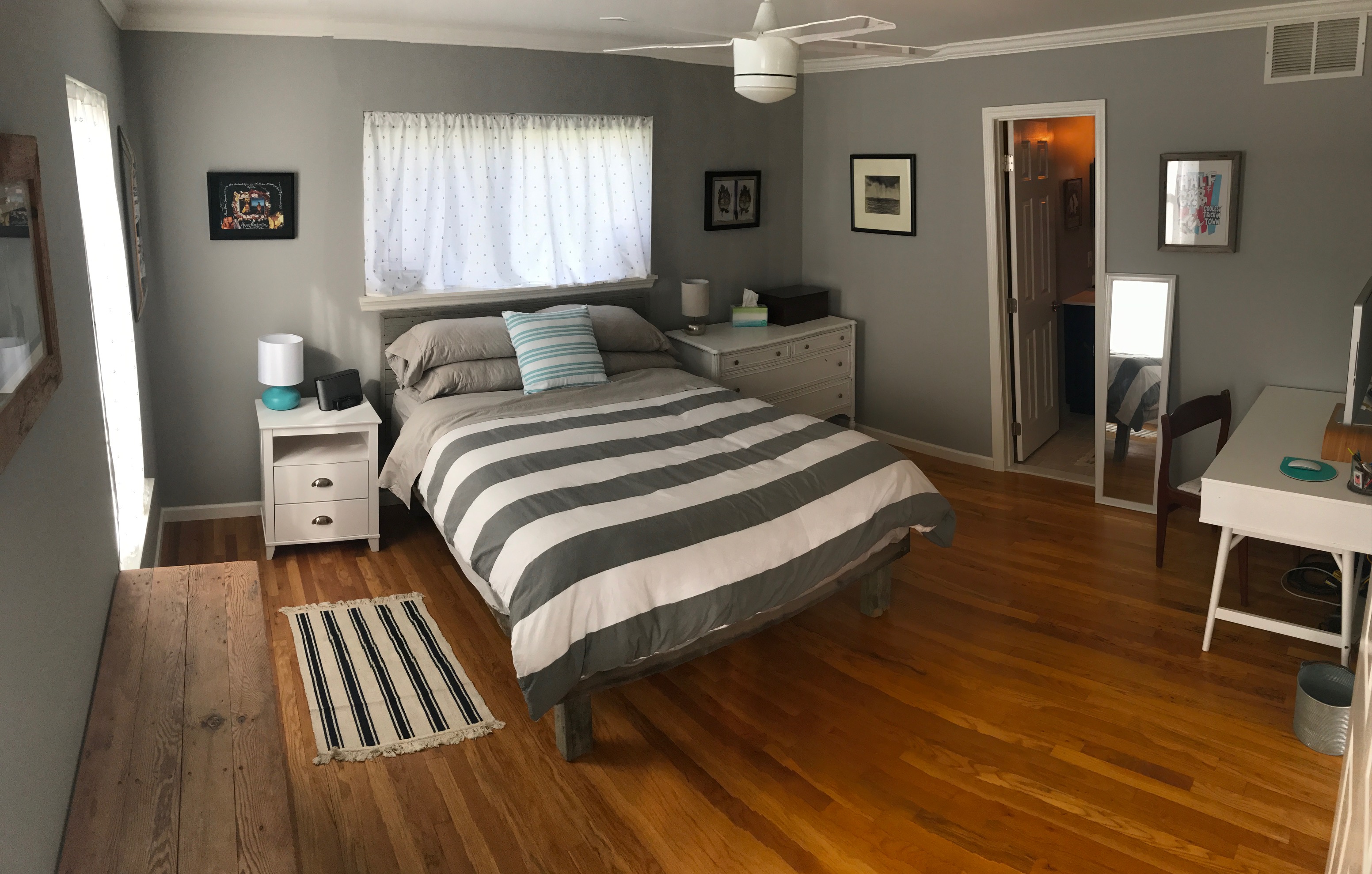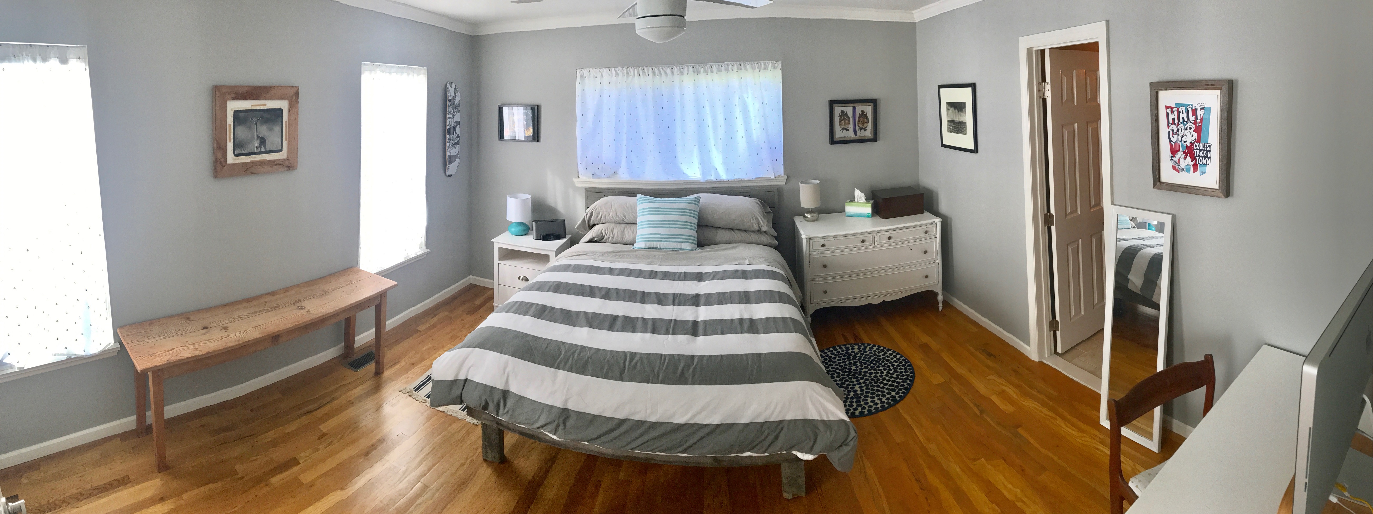 Upstairs guest room. Most of the throw rugs throughout the house came from IKEA.
