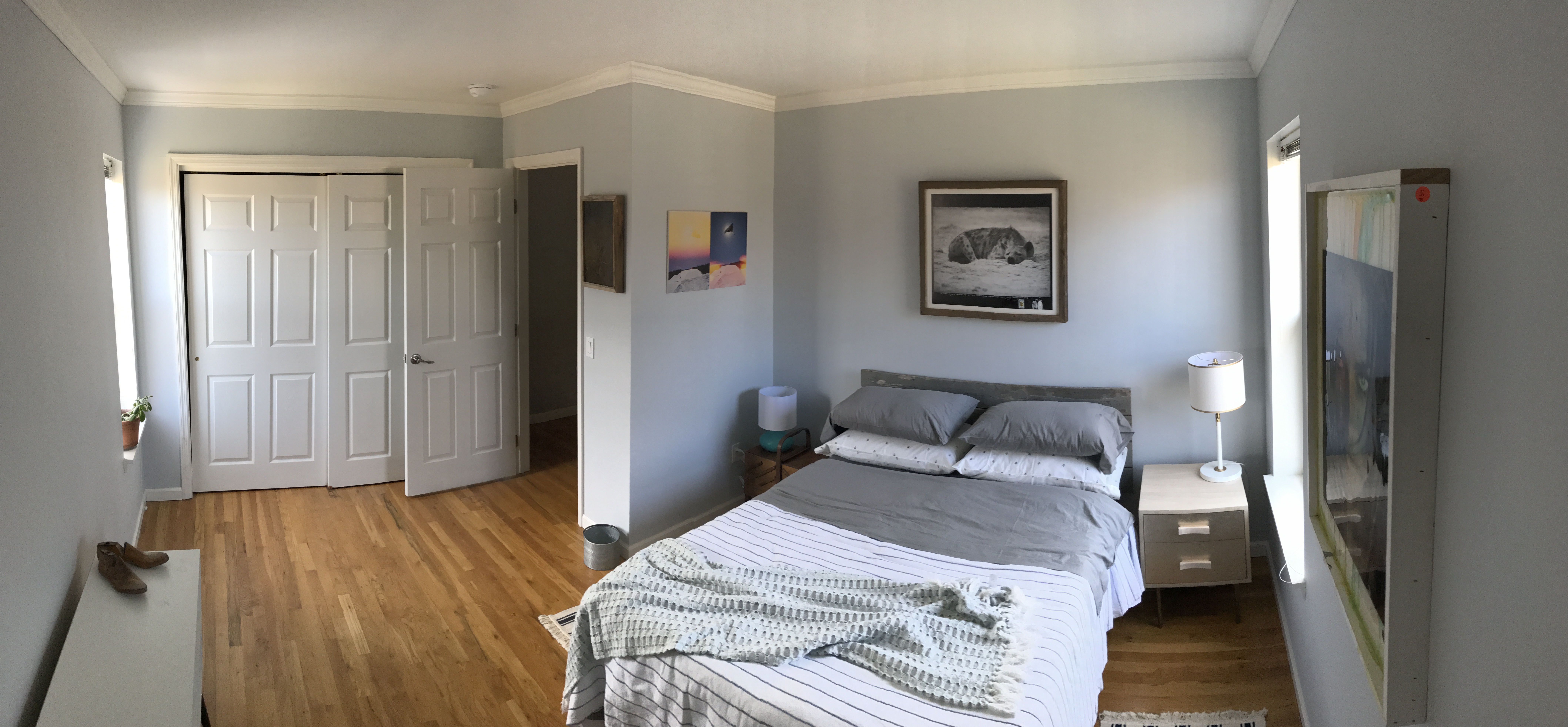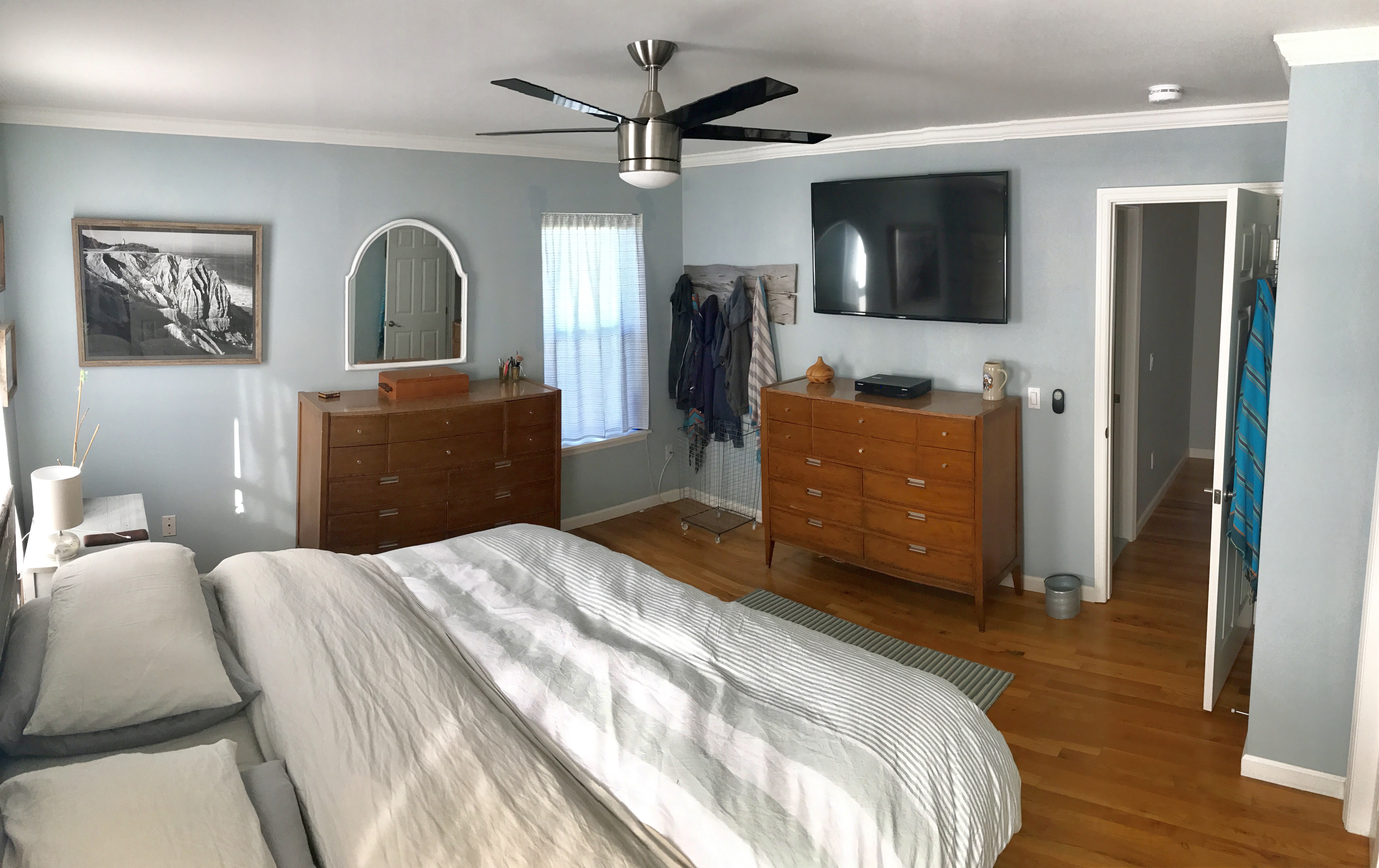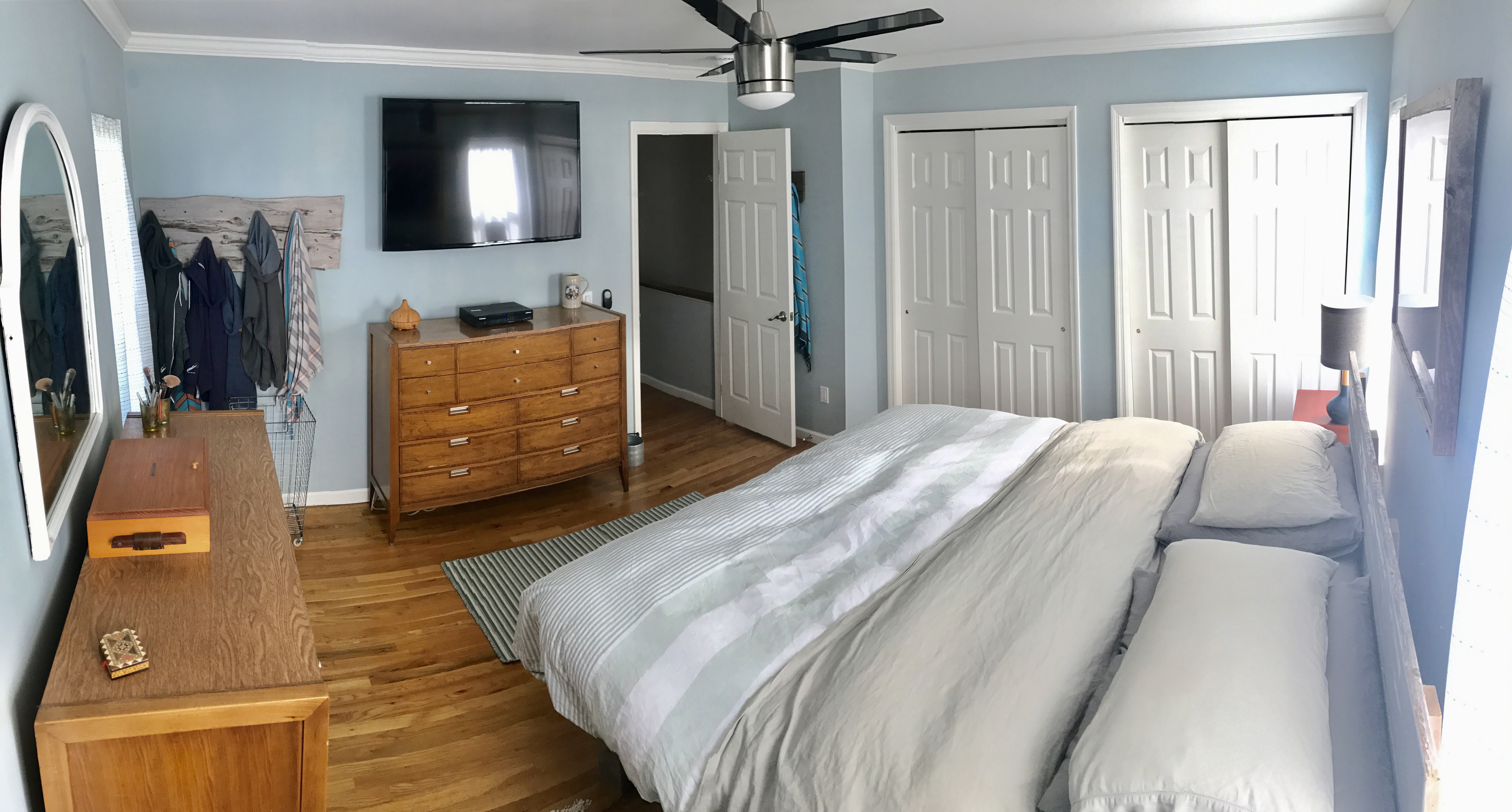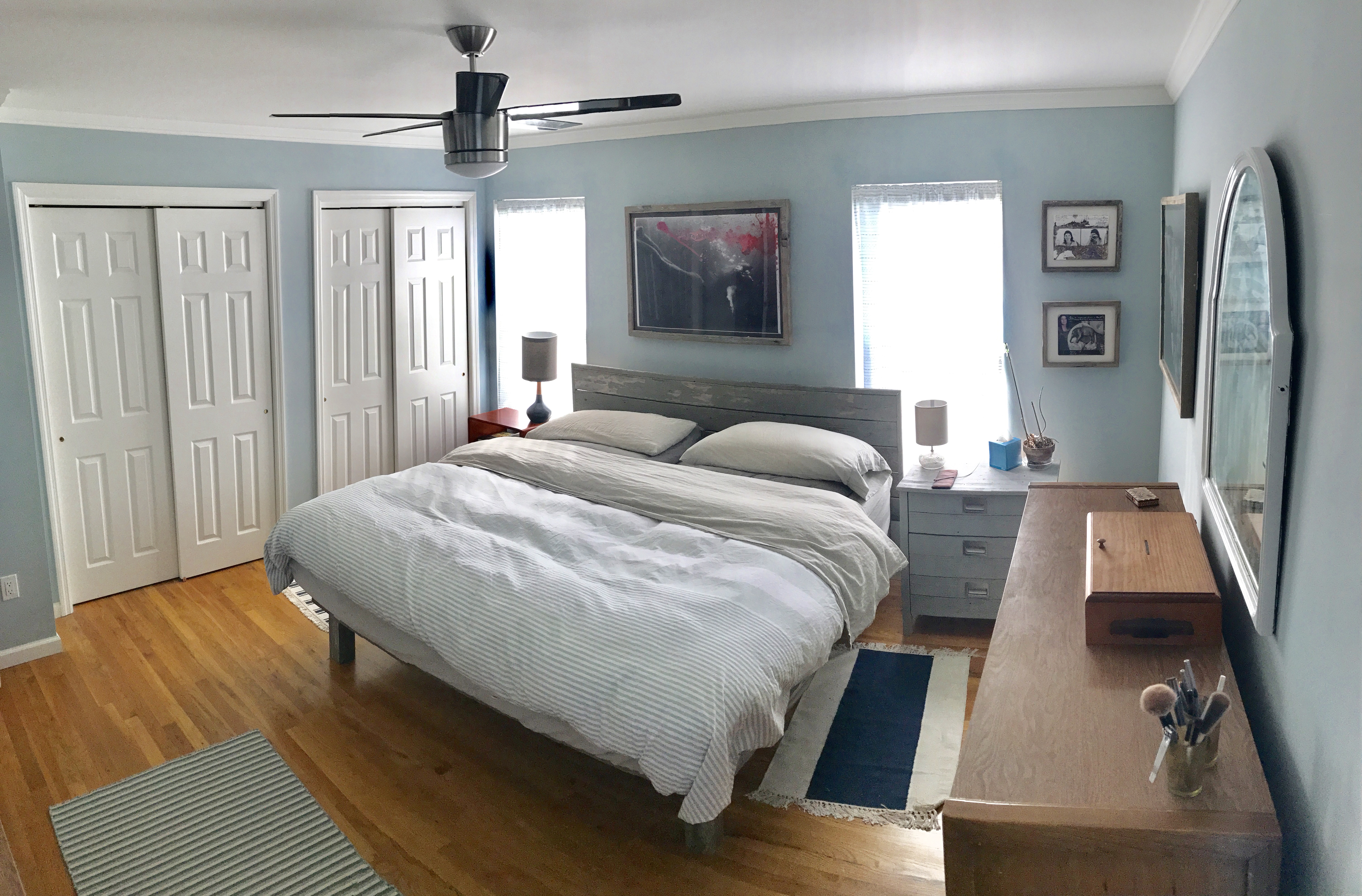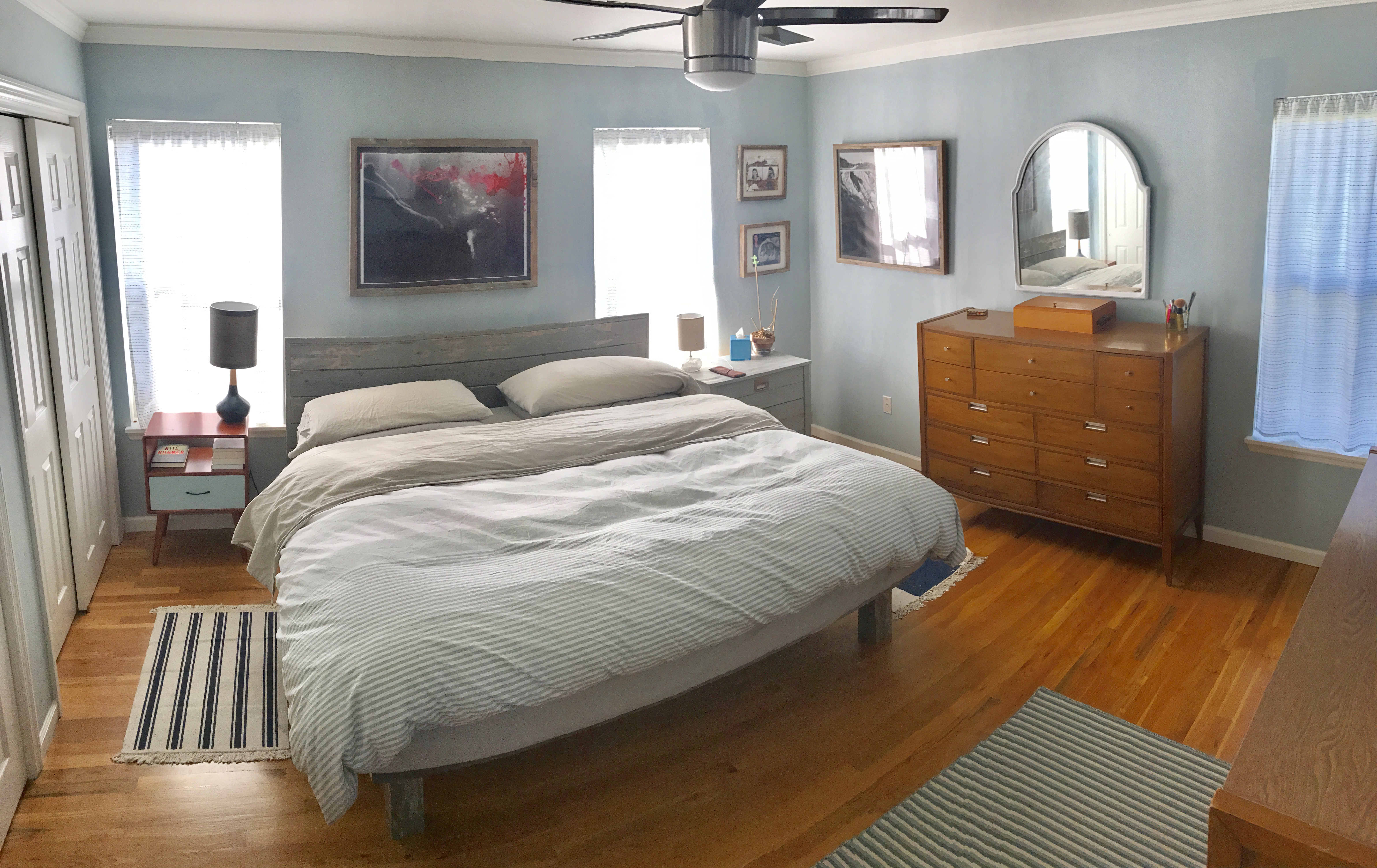 Upstairs guest room. Most of the throw rugs throughout the house came from IKEA.