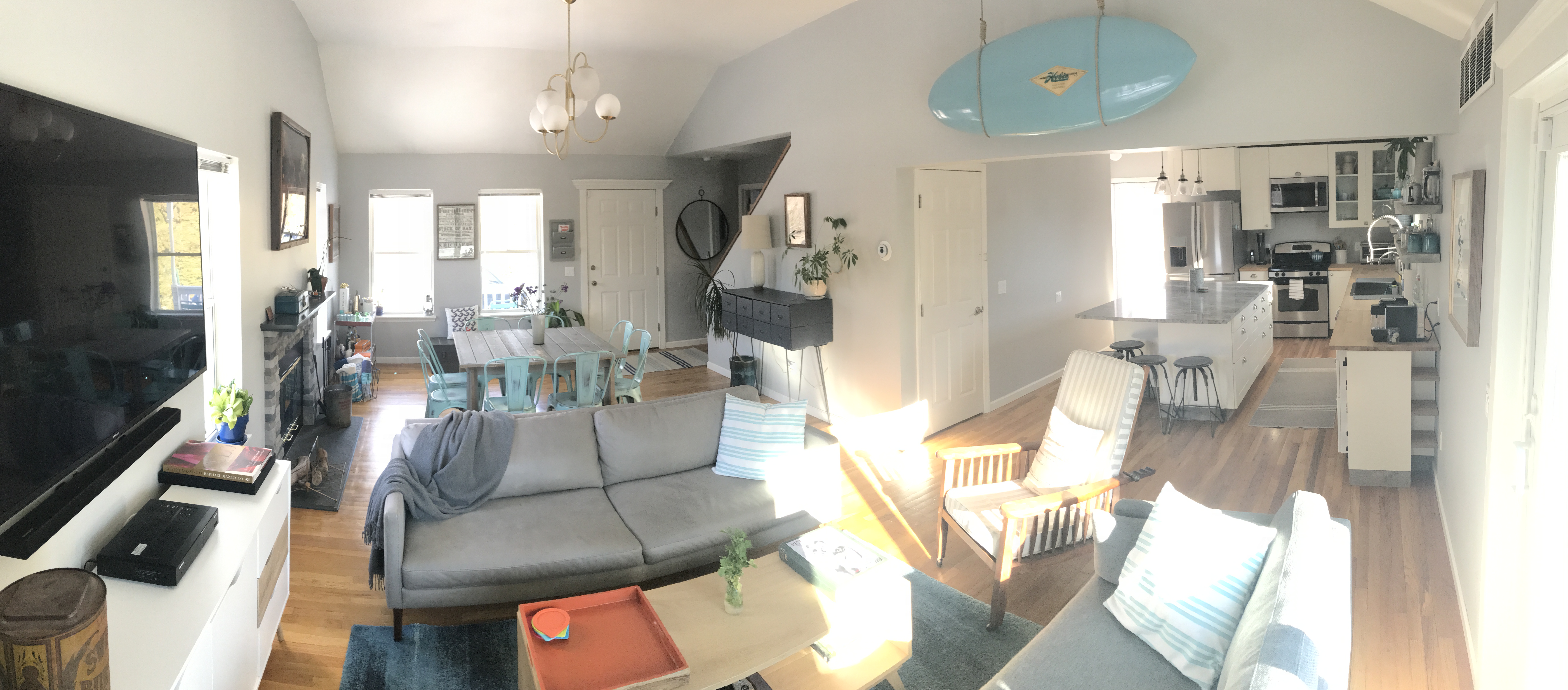 That surfboard was a gift for my 18th birthday. I love that our home is big enough to display it now!